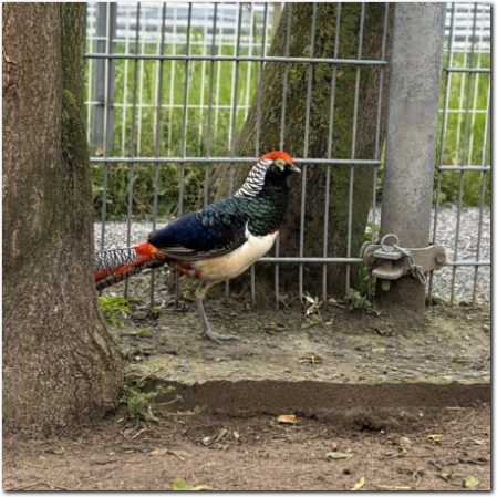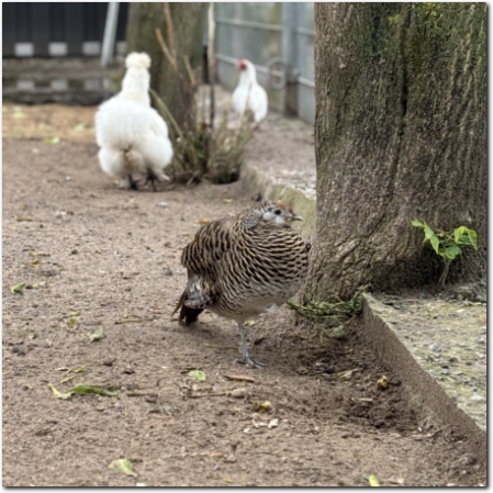 Unser Diamantfasan-Pärchen kam unabhängig voneinander zu uns, bilden aber seitdem ein Paar. Gemeinsam stolzieren sie mit ein paar unsere Hühner durch ihr Gehege. Für Dixie und Dodo suchen wir ein neues zu Hause in entsprechender artgerechter Haltung. Wir geben die Beiden nur als Paar ab, vermitteln sie also nicht getrennt. Von Abfragen nach Einzeltieren bitten wir daher abzusehen, sie sollen zusammen bleiben.