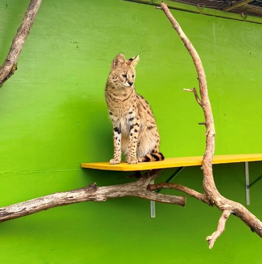 In Gefangenschaft leben selten weibliche Servale, da die Männlichen Tiere für die Zucht von Savannah-Katzen benötigt werden. Savannah-Katzen sind eine Kreuzung von einen Serval und den uns bekannten Hauskatzen. Die Haltung dieser Kreuzung ist in den meisten Bundesländern in Deutschland verboten. Ab der 5. Generation ist die Privathaltung jedoch bei uns in Hessen erlaubt. Alle Tiere, die unter dieser Generation geboren wurden, gelten gesetzlich gesehen als Raubtier. Wir möchten hierbei jedoch besonders darauf hinweisen, dass ein Serval weiterhin ein wildes Tier bleibt und nicht in einer Privathaltung gehalten werden sollte.